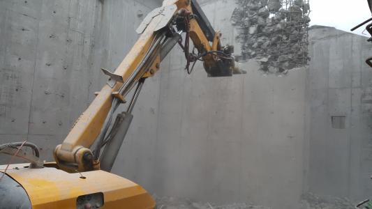 小編在現場親眼所見某改造拆除工地,在進行一項拆除鋼筋混凝土墻體,混凝土樓板,混凝土樓梯等施工。現場一臺Brokk160型遙控拆除機器人,白天裝上混凝土破碎鉗工作;晚上換裝液壓破碎錘工作,大大加快工程進度,讓人震驚不已。